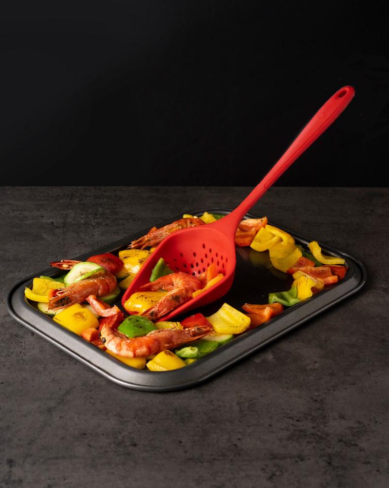 - Seihschaufel aus Silikon mit Edelstahlkern
